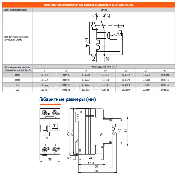 АВДТ 1Р+N 63А 100мА тип A х-ка С ДИФ-103 6кА 16236DEK