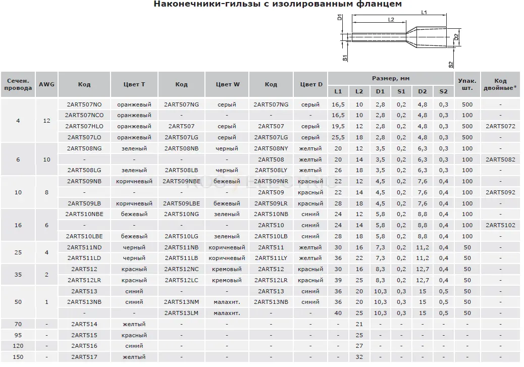 Кабельные наконечники с изолирующими хомутами, согласно DIN 46228-4: 1990-09 и UL 486F Phoenix Contact - предназначены для оконцевания жил медныз многопроволочных кабелей и проводов.