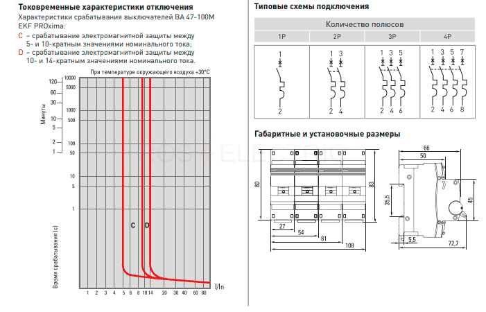 Автоматические выключатели ВА 47-100М с электромагнитным расцепителем (без теплового расцепителя) 10кА EKF PROxima - являются механическими коммутационными аппаратами, производятся в одно-, двух-, трех- и четырехполюсном исполнении и соответствуют ГОСТ IEC 60898-1.
