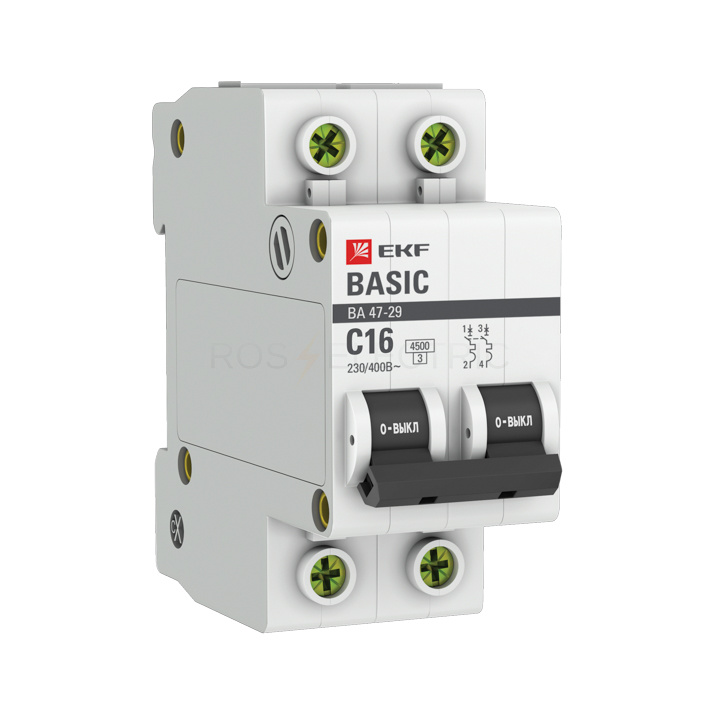 Автоматический выключатель 2P 16А (C) 4,5кА ВА 47-29 EKF Basic mcb4729-2-16C