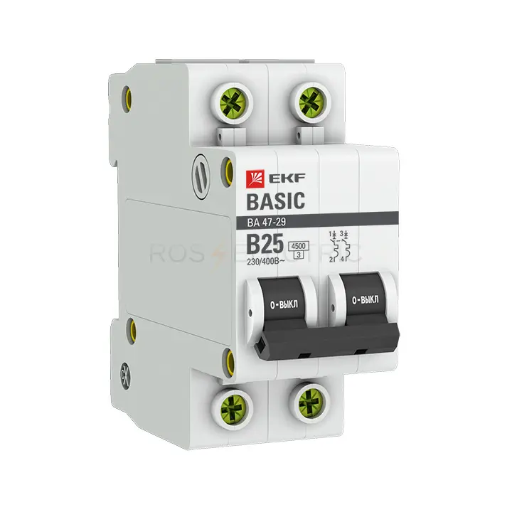 Автоматический выключатель 2P 25А (B) 4,5кА ВА 47-29 EKF Basic mcb4729-2-25-B
