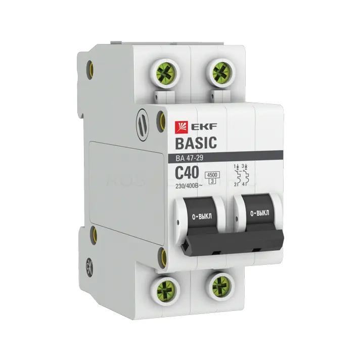 Автоматический выключатель 2P 40А (C) 4,5кА ВА 47-29 EKF Basic mcb4729-2-40C