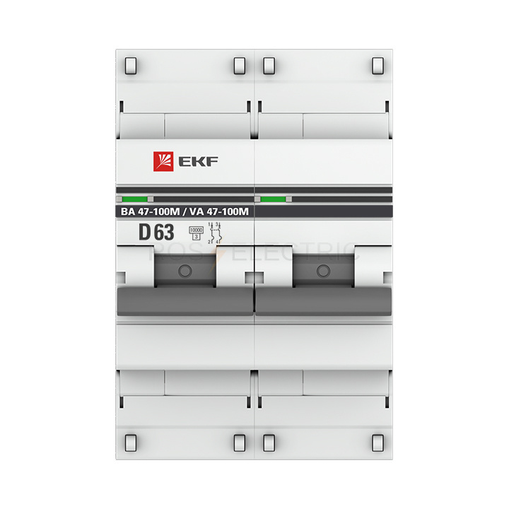 Автоматический выключатель 2P 63А (D) 10kA ВА 47-100M без теплового расцепителя EKF PROxima mcb47100m-2-63D-pro