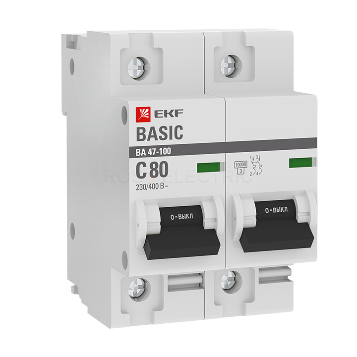 Автоматический выключатель 2P 80А (C) 10kA ВА 47-100 EKF Basic mcb47100-2-80C-bas