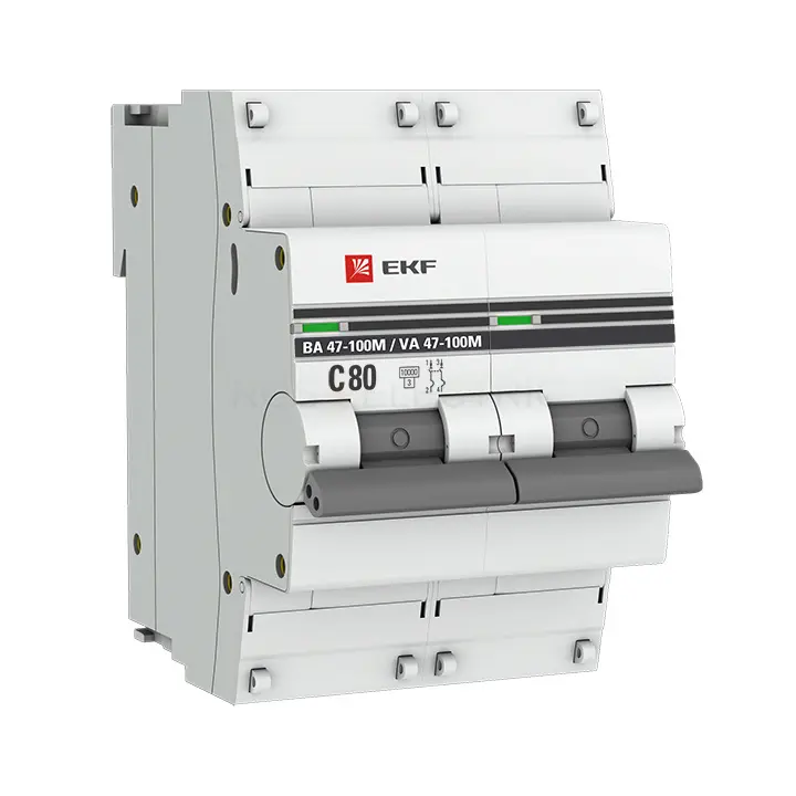 Автоматический выключатель 2P 80А (C) 10kA ВА 47-100M без теплового расцепителя EKF PROxima mcb47100m-2-80C-pro