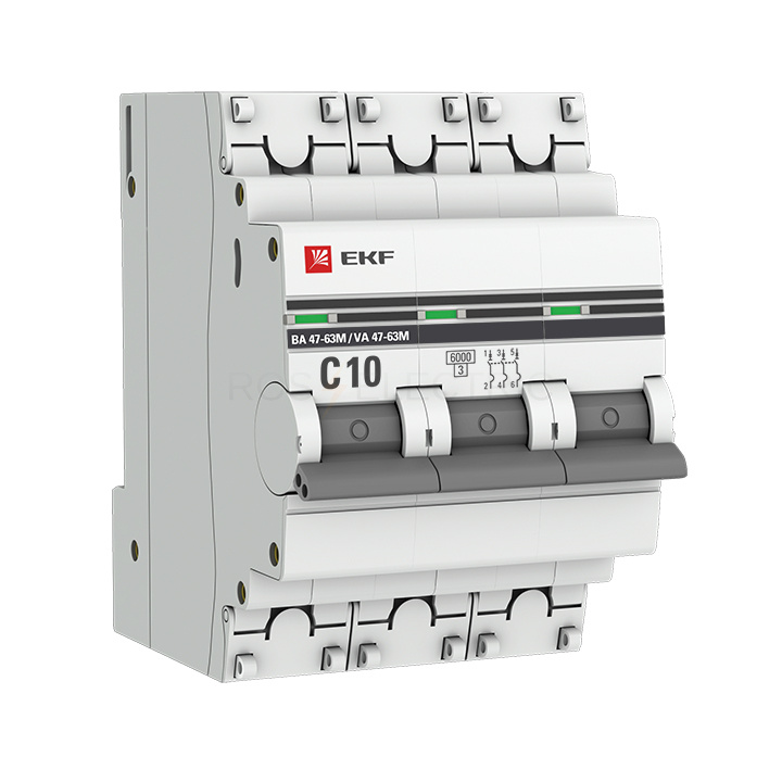 Автоматический выключатель 3P 10А (C) 6кА ВА 47-63M без теплового расцепителя EKF PROxima mcb4763m-6-3-10C-pro
