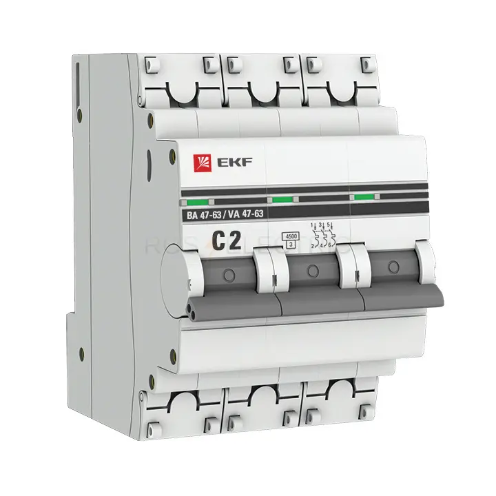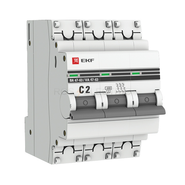 Автоматический выключатель 3P 2А (C) 4,5kA ВА 47-63 EKF PROxima mcb4763-3-02C-pro