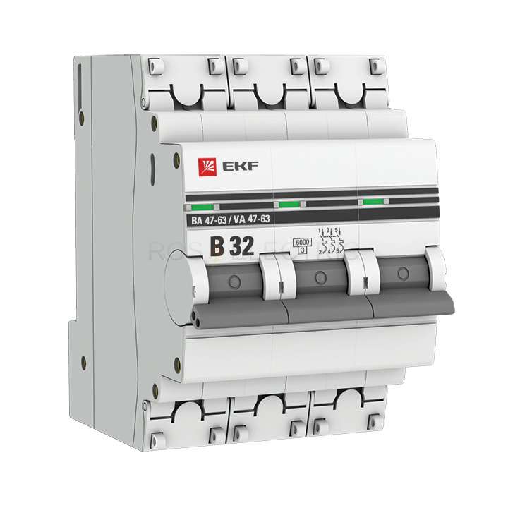 Автоматический выключатель 3P 32А (B) 6кА ВА 47-63 EKF PROxima mcb4763-6-3-32B-pro