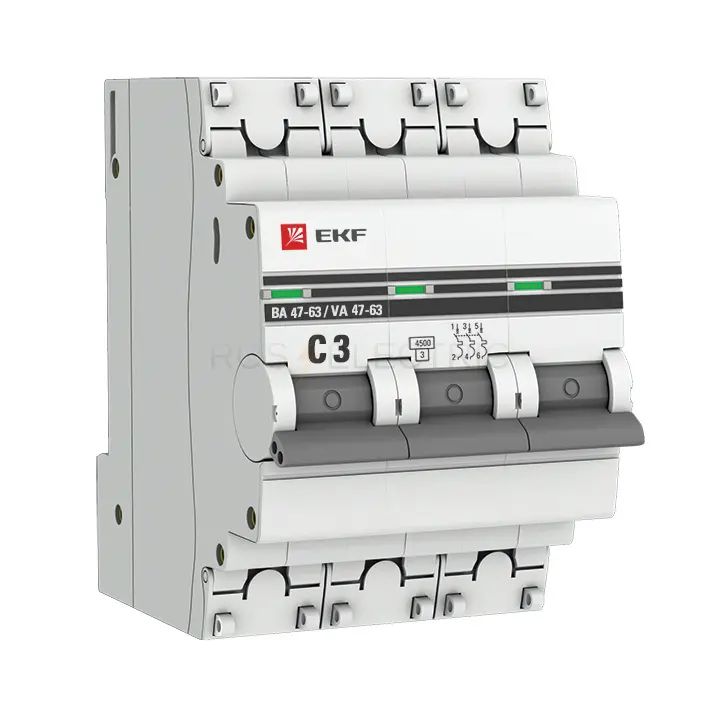 Автоматический выключатель 3P 3А (C) 4,5kA ВА 47-63 EKF PROxima mcb4763-3-03C-pro