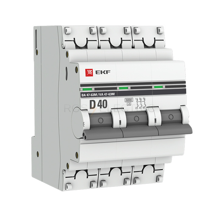 Автоматический выключатель 3P 40А (D) 6кА ВА 47-63M без теплового расцепителя EKF PROxima mcb4763m-6-3-40D-pro