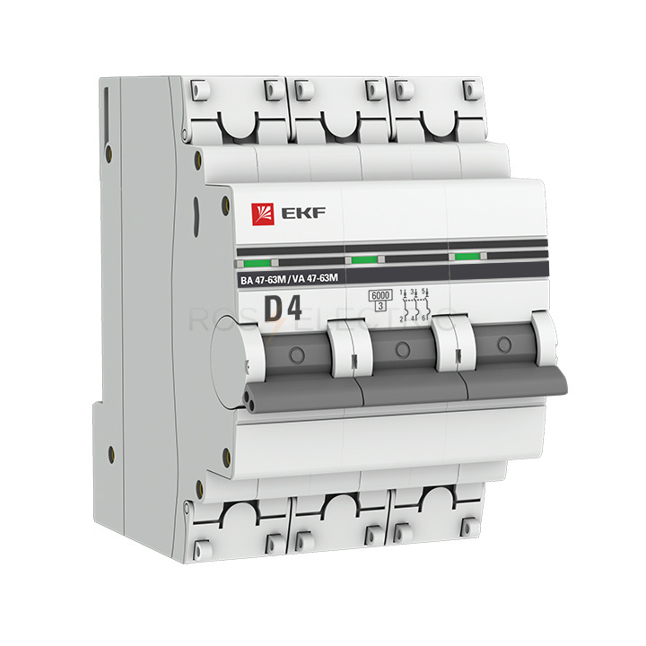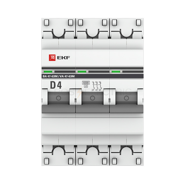 Автоматический выключатель 3P 4А (D) 6кА ВА 47-63M без теплового расцепителя EKF PROxima mcb4763m-6-3-4D-pro