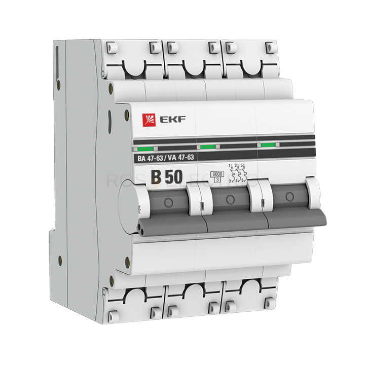 Автоматический выключатель 3P 50А (B) 6кА ВА 47-63 EKF PROxima mcb4763-6-3-50B-pro