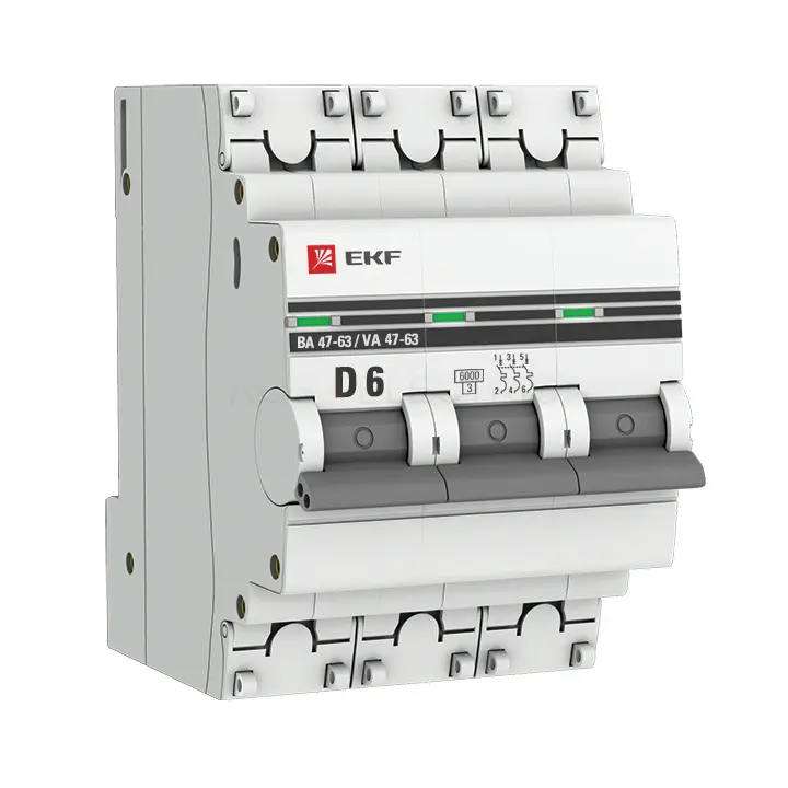 Автоматический выключатель 3P 6А (D) 6кА ВА 47-63 EKF PROxima mcb4763-6-3-06D-pro