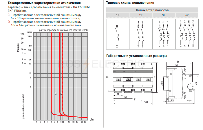 Автоматические выключатели ВА 47-100М с электромагнитным расцепителем (без теплового расцепителя) 10кА EKF PROxima - являются механическими коммутационными аппаратами, производятся в одно-, двух-, трех- и четырехполюсном исполнении и соответствуют ГОСТ IEC 60898-1.