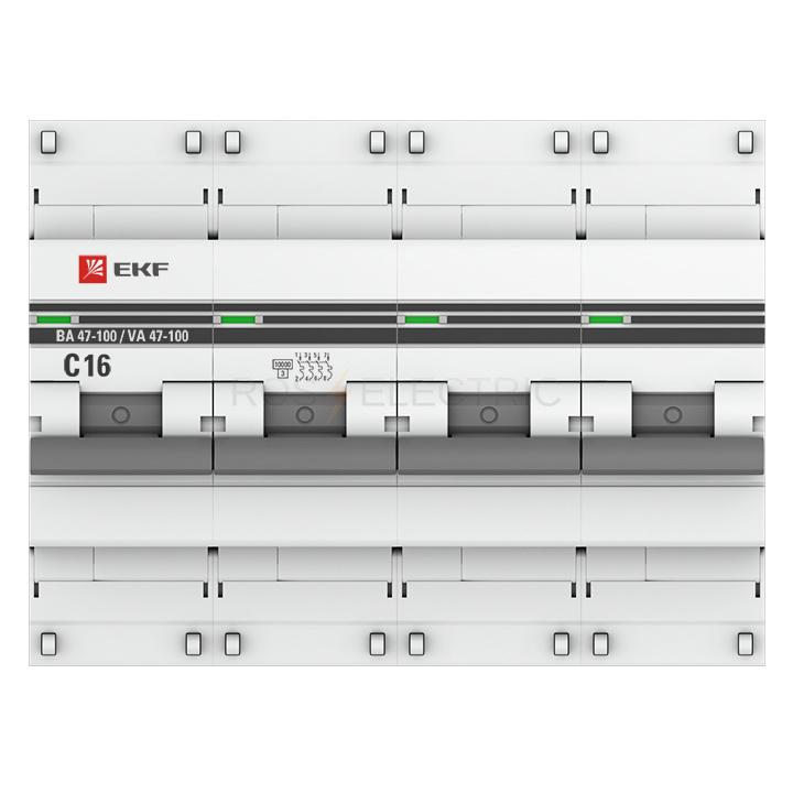 Автоматический выключатель 4P 16А (C) 10kA ВА 47-100 EKF PROxima mcb47100-4-16C-pro