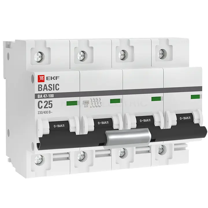 Автоматический выключатель 4P 25А (C) 10kA ВА 47-100 EKF Basic mcb47100-4-25C-bas