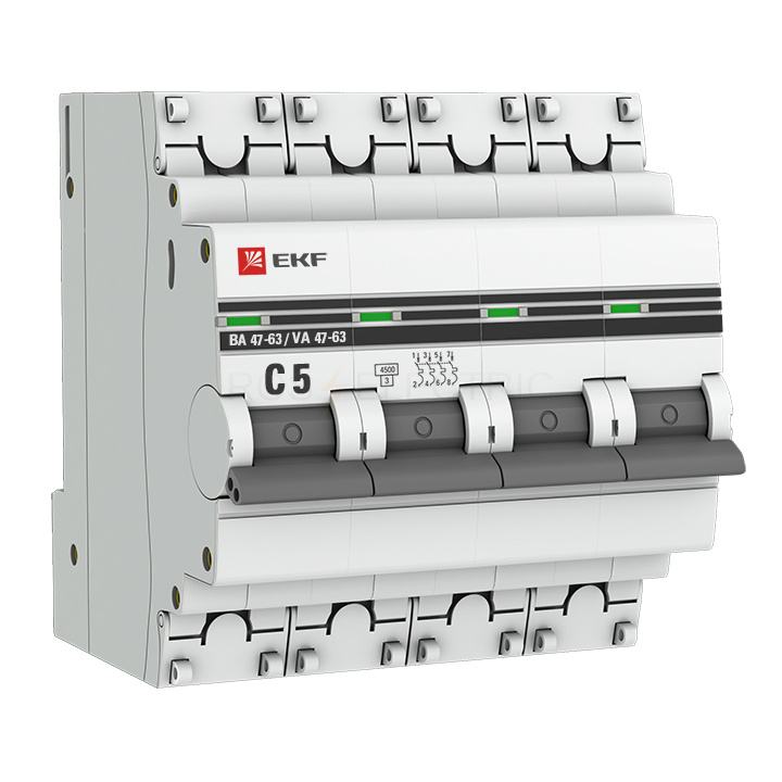 Автоматический выключатель 4P 5А (C) 4,5kA ВА 47-63 EKF PROxima mcb4763-4-05C-pro