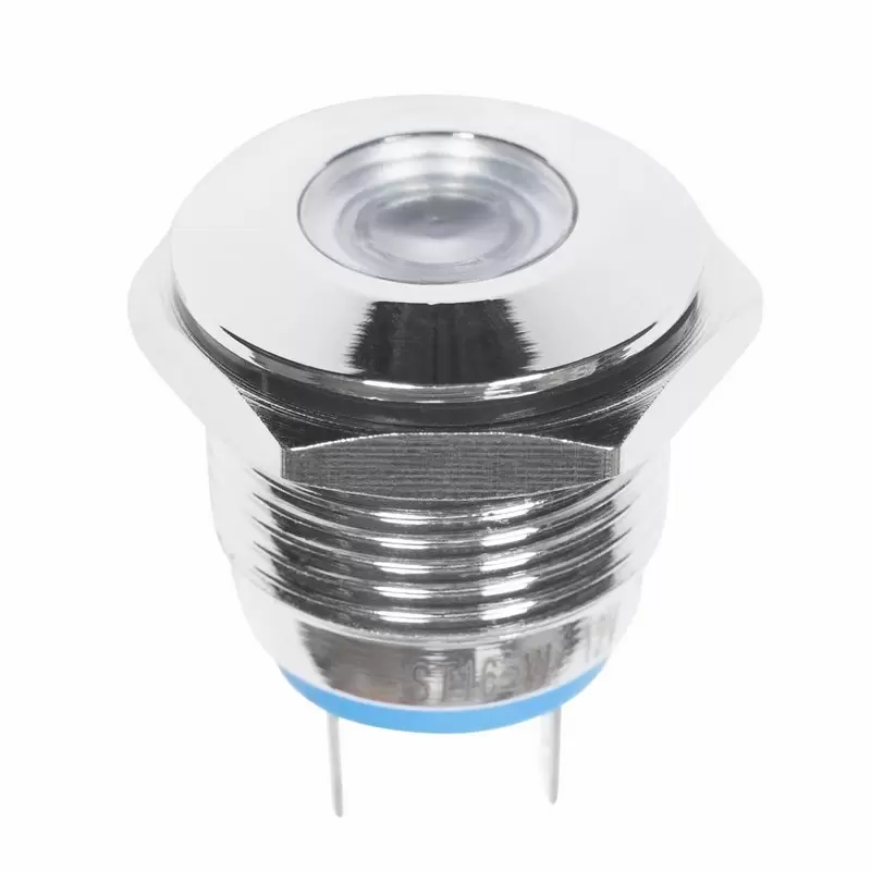 Индикатор металл Ø16 12В подсв/белая LED предназначен для индикации состояния электрических цепей. Такие индикаторы устанавливаются на лицевых панелях управления электрооборудованием (в объектах энергоснабжения, измерительных приборах, блоках питания, легковых и грузовых автомобилях, и других местах) с рабочим напряжением не более 12В. Разнообразные цветовые варианты исполнения позволяют эффективно комплектовать панели управления. Изделие состоит из двух основных частей - лицевой части (головки) и контактной. Монтаж осуществляется без применения винтов на плоских панелях толщиной от 0.5мм до 5мм, с помощью гайки. Подключение контактов осуществляется с помощью пайки.Основные характеристики:Номинальное напряжение: 12В;Номинальный ток: 15mA;Цвет индикации: белый LED;Установочный диаметр: 16мм;Рабочая температура: от -25℃..+55℃;Допустимая влажность: до 85%, без выпадения конденсата.Преимуществами использования данного изделия является увеличенная яркость индикации за счет LED подсветки, быстрота и удобство монтажа.