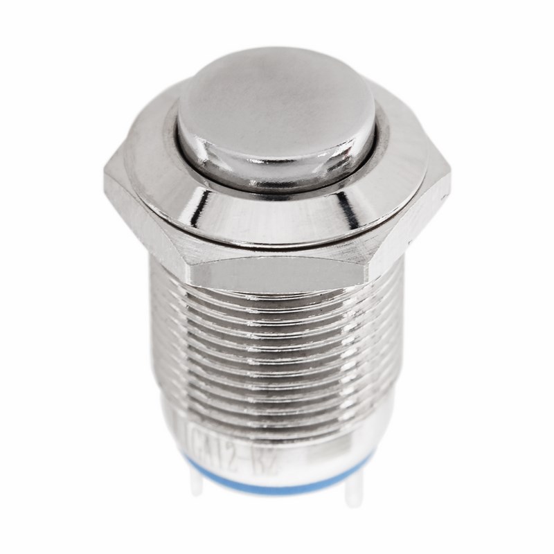 Кнопка антивандальная Ø12 Фикс (2с) OFF-(ON) выпуклая предназначена для коммутации электрических цепей напряжением до 250В путем включения-выключения питающего провода. Металлические кнопки применяются в местах, где существует большой риск их повреждения (на различных производственных линиях, в лифтовых кабинах, около входной двери и т.д.), а также для декоративного оформления панелей управления. Главными отличительными особенностями такой кнопки являются металлическое исполнение и неуязвимость контактной группы, что обеспечит ей долговечное функционирование. Изделие состоит из двух основных частей - лицевой части (головки) и контактной, и имеет пружинный возвратный механизм. Монтаж осуществляется без применения винтов на плоских панелях толщиной от 0.5мм до 5мм. Подключение проводов осуществляется с помощью пайки.Основные характеристики:Номинальное напряжение: 250В;Номинальный ток: 2A;Тип переключения: OFF-(ON);Количество контактных групп: 1;Количество контактов в контактной группе: 2;Фиксация положений: отсутствует;Индикатор коммутационных положений: отсутствует;Установочный диаметр: 12мм;Рабочая температура: от -25℃ до +85℃;Ресурс: 4 000 циклов.Преимуществами использования данного изделия является надежность, быстрота и удобство монтажа.