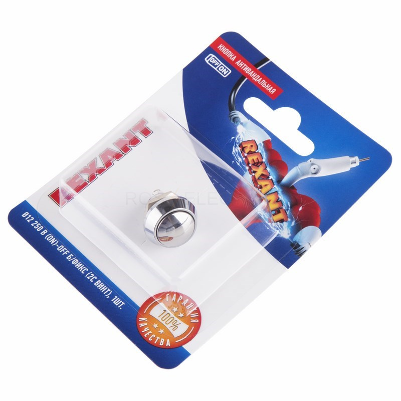 Кнопка антивандальная Ø12 Б/Фикс (2с винт) (ON)-OFF сфера (A12-A3) REXANT (в упак. 1шт.) 06-0338-A