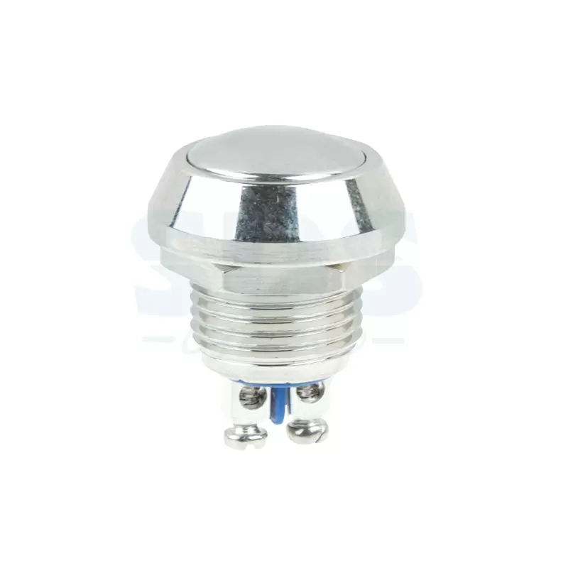 Кнопка антивандальная Ø12 Фикс (2с) ON-OFF выпуклая предназначена для коммутации электрических цепей напряжением до 250В путем включения-выключения питающего провода. Металлические кнопки применяются в местах, где существует большой риск их повреждения (на различных производственных линиях, в лифтовых кабинах, около входной двери и т.д.), а также для декоративного оформления панелей управления. Главными отличительными особенностями такой кнопки являются металлическое исполнение и неуязвимость контактной группы, что обеспечит ей долговечное функционирование. Изделие состоит из двух основных частей - лицевой части (головки) и контактной, и имеет пружинный возвратный механизм. Монтаж осуществляется без применения винтов на плоских панелях толщиной от 0.5мм до 5мм. Подключение проводов осуществляется с помощью пайки.Основные характеристики:Номинальное напряжение: 250В;Номинальный ток: 2A;Тип переключения: ON-OFF;Количество контактных групп: 1;Количество контактов в контактной группе: 2;Фиксация положений: есть;Индикатор коммутационных положений: отсутствует;Установочный диаметр: 12мм;Рабочая температура: от -25℃ до +85℃;Ресурс: 4 000 циклов.Преимуществами использования данного изделия является надежность, быстрота и удобство монтажа.