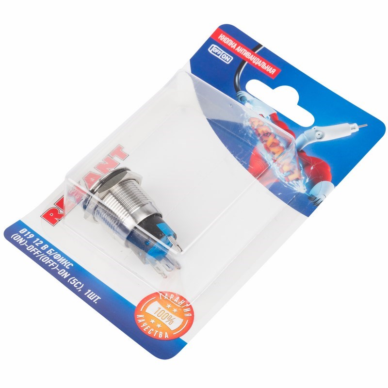 Технические характеристики:Номинальное напряжение: 12В;Номинальный ток: 5A;Тип переключения: (ON)-OFF/(OFF)-ON;Количество контактных групп: 1;Количество контактов в контактной группе: 3;Фиксация положений: отсутствует;Индикатор коммутационных положений: белый;Установочный диаметр: 19мм;Рабочая температура: от -25℃ до +85℃;Ресурс: 10 000 циклов.