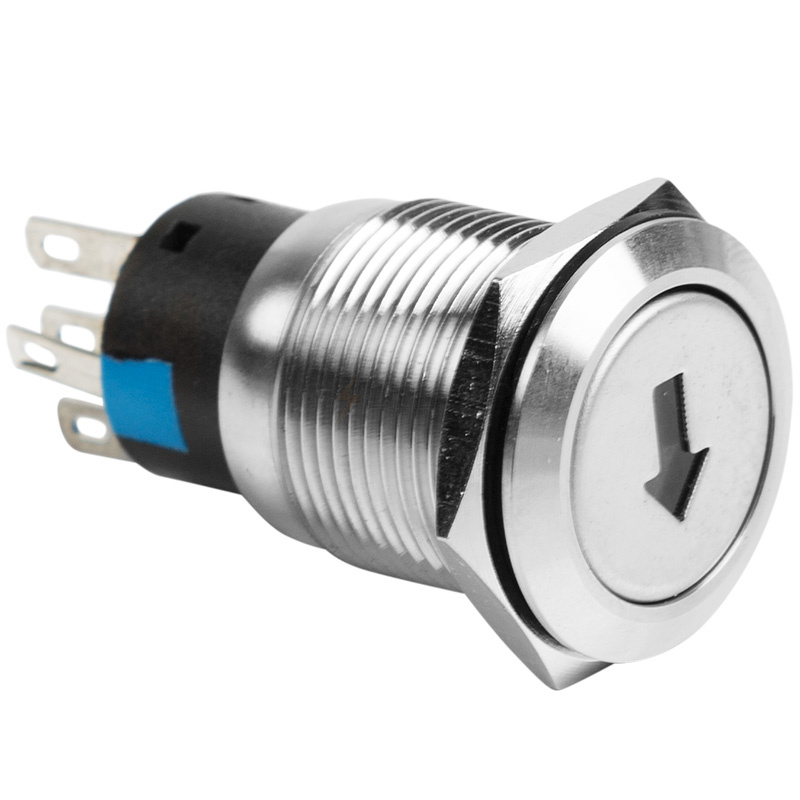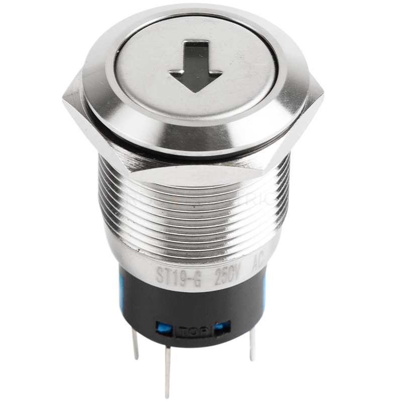 Кнопка антивандальная Ø19 12В Б/Фикс (5с) (ON)-OFF/(OFF)-ON плоская подсв/зеленая СТРЕЛКА REXANT предназначена для коммутации электрических цепей напряжением до 12В путем включения-выключения питающего провода. Металлические кнопки применяются в местах, где существует большой риск их повреждения (на различных производственных линиях, в лифтовых кабинах, около входной двери и т.д.), а также для декоративного оформления панелей управления. Главными отличительными особенностями такой кнопки являются металлическое исполнение и неуязвимость контактной группы, что обеспечит ей долговечное функционирование. Изделие состоит из двух основных частей - лицевой части (головки) и контактной, и имеет пружинный возвратный механизм. Монтаж осуществляется без применения винтов на плоских панелях толщиной от 0.5мм до 10мм. Подключение проводов осуществляется с помощью винтовых зажимов, пайки или разъемом.Основные характеристики:Номинальное напряжение: 12В;Номинальный ток: 3A (250VAC);Тип переключения: (ON)-OFF/(OFF)-ON;Количество контактных групп: 1;Количество контактов в контактной группе: 3;Фиксация положений: отсутствует;Индикатор коммутационных положений: зеленый;Установочный диаметр: 19мм;Рабочая температура: от -25℃ до +55℃;Ресурс: 10 000 циклов.Преимуществами использования данного изделия является надежность, быстрота и удобство монтажа.