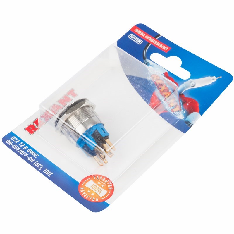 Кнопка антивандальная Ø22 12В Б/Фикс (6с) ON-OFF/OFF-ON подсв/красная REXANT (в упак. 1шт.) 06-0374-B