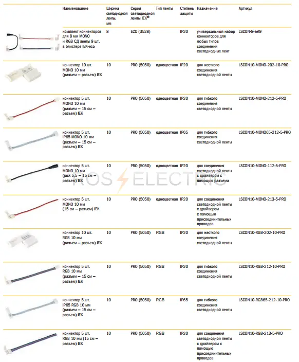Коннекторы (клеммы соединительные) светодиодных лент ИЭК - предназначены для жесткого соединения светодиодных лент без пайки.