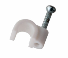 Высококачественный круглый крепеж кабеля REXANT представляет собой дугообразную пластиковую скобу диаметром 5 мм с гвоздём. Используется для мгновенного, а главное надёжного крепления проводов и кабелей к поверхностям стен, несущих конструкций и потолков. Гвоздик выполнен из закаленного металла, что позволит надежно забивать его даже в плотные и твердые материалы, не опасаясь сломать или погнуть гвоздь.Размеры скобы (высота/ширина): 6х5 ммРазмеры гвоздя (диаметр/длина): 1,7х14 ммСкоба предназначена для круглого кабеля.