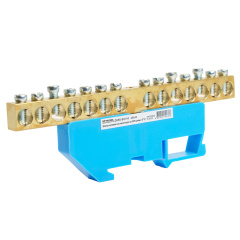 LD555-812-14 Шина "N" на изоляторе 8*12 на DIN-рейку 14 выводов, синий 49542