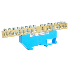 LD555-812-16 Шина "N" на изоляторе 8*12 на DIN-рейку 16 выводов, синий 49543