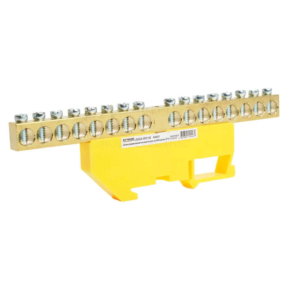 LD555-812-16 Шина "PE" на изоляторе 8*12 на DIN-рейку 16 выводов, желтый 49557