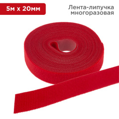 Лента-липучка многоразовая 5 м х 20 мм, красная (1 шт.) REXANT 07-7524