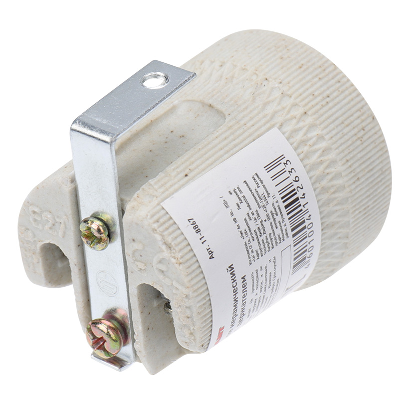 Патрон керамический Е27 с держателем предназначен для механического крепления и подключения к питающей сети источника света, предназначается для установки в осветительные приборы различных типов ламп, обладающих форматом цоколя Е-27Источник питания: 220-240 В ACЧастота питания: 50/60 ГцНоминальный ток: 4 АМатериал: фарфорЦвет: белый