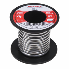 Припой без канифоли ПОС-61 REXANT, 100 г, Ø3,0 мм, (олово 61%, свинец 39%), катушка 09-3124
