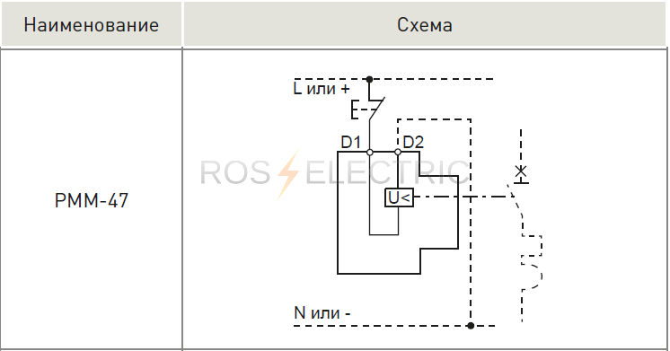 Расцепитель минимального и максимального напряжения РММ-47 - предназначен для отключения выключателей при недопустимом снижении или повышении напряжения. Конструктивно представляет собой электронный пороговый элемент, который подключается к контролируемой электрической цепи. К выходу порогового элемента подключен электромагнит, который через рычаг воздействует на механизм свободного расцепления выключателей.Используется для автоматических выключателей ВА 47-63 (4.5кА), автоматических выключателей ВА 47-63 (6кА),автоматических выключателей ВА 47-100, дифференциальных автоматов АД-32, для выключателей нагрузки ВН-63. Особенности работы расцепителей.