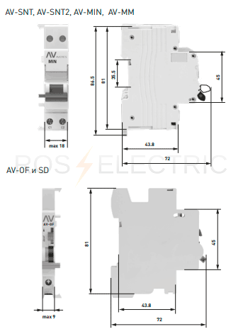 Расцепители минимального напряжения AV-MIN EKF AVERES предназначены для отключения одно-, двух-, трех- или четырехполюсных автоматических выключателей серии AVERES при недопустимом понижении напряжения.