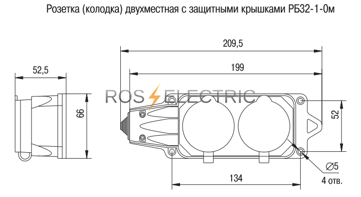 PKR64-016-2-K02 РБ34-1-0м Розетка (колодка) четырехместная с защитными крышками ОМЕГА IP44