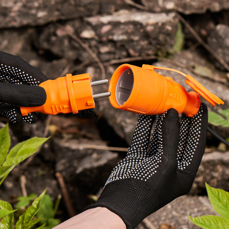 Электрическая влагозащищенная переносная розетка из каучука REXANT предназначена для использования в сложных эксплуатационных условиях с высокой влажностью и широко применяется в быту, производстве и строительстве. Она имеет степень защиты IP44 – защита от капель и брызг воды, попадающих под любым углом, и может быть применена для организации электропитания, в том числе под открытым небом. В дождь под навесом. Не допускается эксплуатация погружением в воду. Она легко монтируется, имеет высокую надежность и долгий срок службы. Розетка оснащена защитной крышкой. Для обеспечения безопасности все детали, соприкасающиеся с токоведущими частями, выполнены из огнеупорного материала, устойчивого к температуре до +850 ⁰С.Ударопрочный разборный корпус выполнен из каучука – полимерный материал, сочетающий внешний вид, упругость и эластичность обычного каучука и эффективность обработки пластмасс. Яркий оранжевый цвет корпуса создает контрастность с окружающими предметами и легко находится взглядом.Преимущества каучуковых корпусов электрических разъемов:Отличная износостойкость при изгибеХорошие диэлектрические свойстваХорошая стойкость к разрыву и истираниюВысокий диапазон рабочий температурВысокая эластичность и стойкость к ударам, в том числе и при низких температурахНизкий удельный весОтличная стойкость к химикатам и атмосферному воздействиюВысокая водонепроницаемость Напряжение: 200-250 ВНоминальный ток: 16 АКласс защиты: IP44Заземление: естьКорпус: каучукСечение проводников: 0,75-2,5 мм²Количество розеток: 1Контактная группа: латуньРабочая температура: -40...+80 °СТип полюсов: 2Р+РЕ