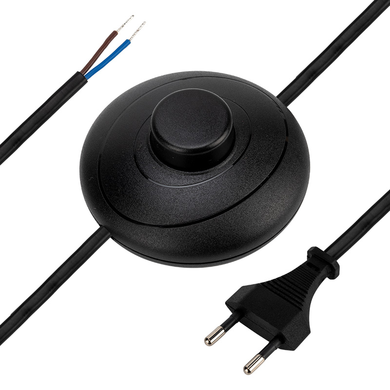 Сетевой шнур с напольным переключателем 2х0,75 мм², 2,5 м черный REXANT 11-1144