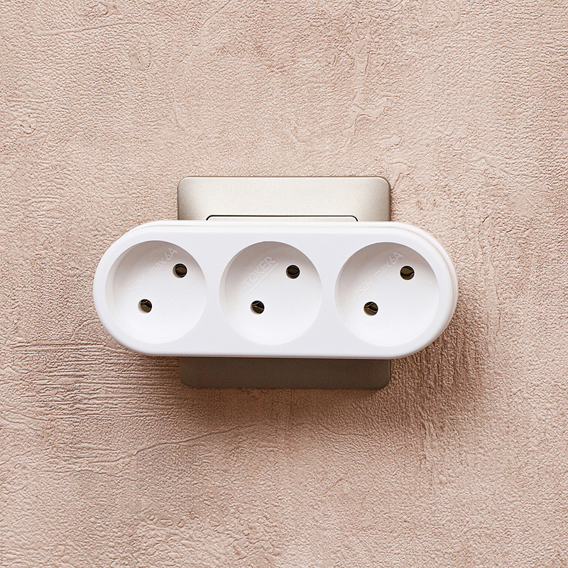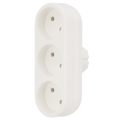 Тройник электрический линейный 6А без заземления, белый REXANT 11-1078
