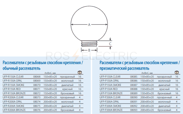 Рассеиватели в форме шара (сфера) призматические UNIEL - предназначены для установки в основание или в кронштейн садово-паркового светильника.