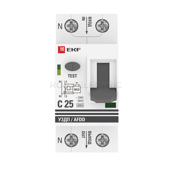 Устройство защиты от дугового пробоя (УЗДП) с автоматическим выключателем 1P+N 25А (C) 6кА EKF PROxi afdd-2-25C-pro