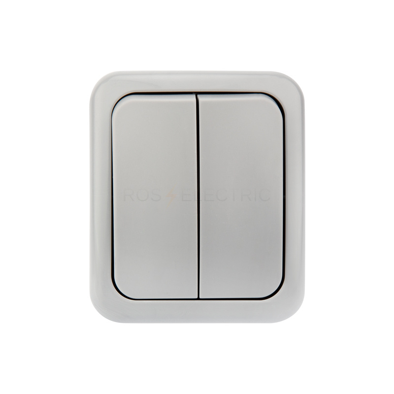 Выключатель двухклавишный Mini OG OG IP54, о/у, серый KRANZ KR-78-0833