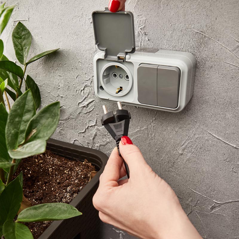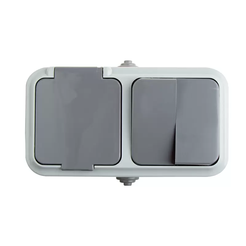 Выключатель двухклавишный + розетка влагозащищенная для открытой установки REXANT IP54, выключатель 78-0530