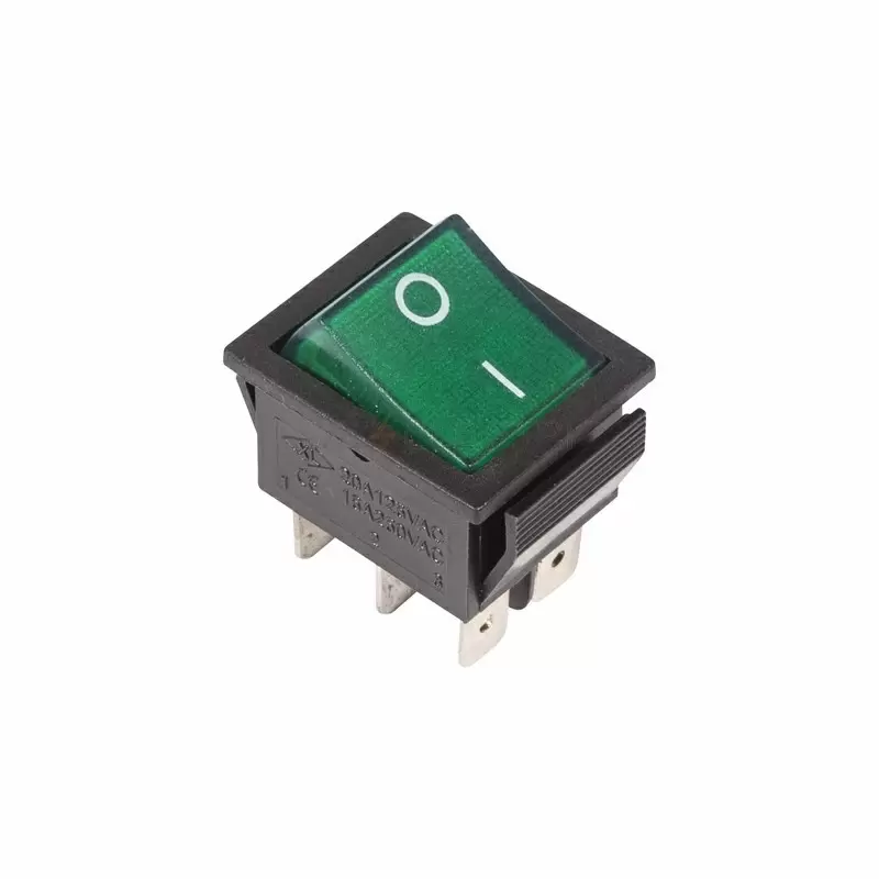 Выключатель клавишный 250V 15А (6с) ON-ON зеленый с подсветкой REXANT 36-2352