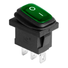 Выключатель клавишный 250V 6А (3с) ON-OFF зеленый с подсветкой Mini ВЛАГОЗАЩИТА REXANT 36-2178
