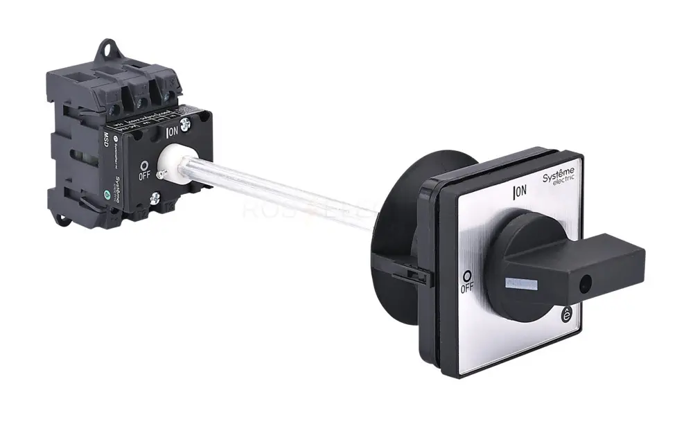 Выключатель-разъединитель MSD на номинальный ток 32А применяется для коммутации силовых электрических цепей активной, индуктивной или смешанной нагрузок, может использоваться для включения и отключения двигателей категорий применения AC–3 и DC–3. 3-полюсное исполнение с черной выносной поворотной рукояткой, монтаж на DIN-рейку или монтажную плату на задней панели шкафа. Длина штока в комплекте 32-150 мм.